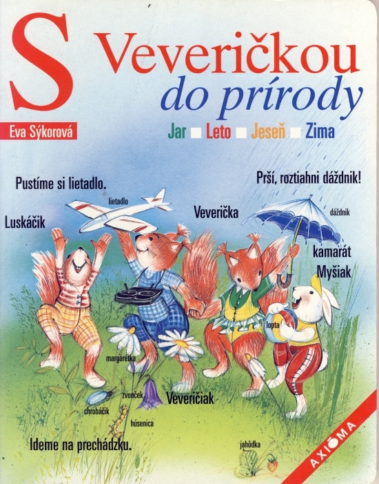 Na jar deti veverička povodí po záhrade, v lete sa pôjdu okúpať na jazero a zabavia sa na letnej slávnosti, na jeseň si budú púšťať šarkana a v zime si užijú sánkovačku a postavia si snehuliaka.