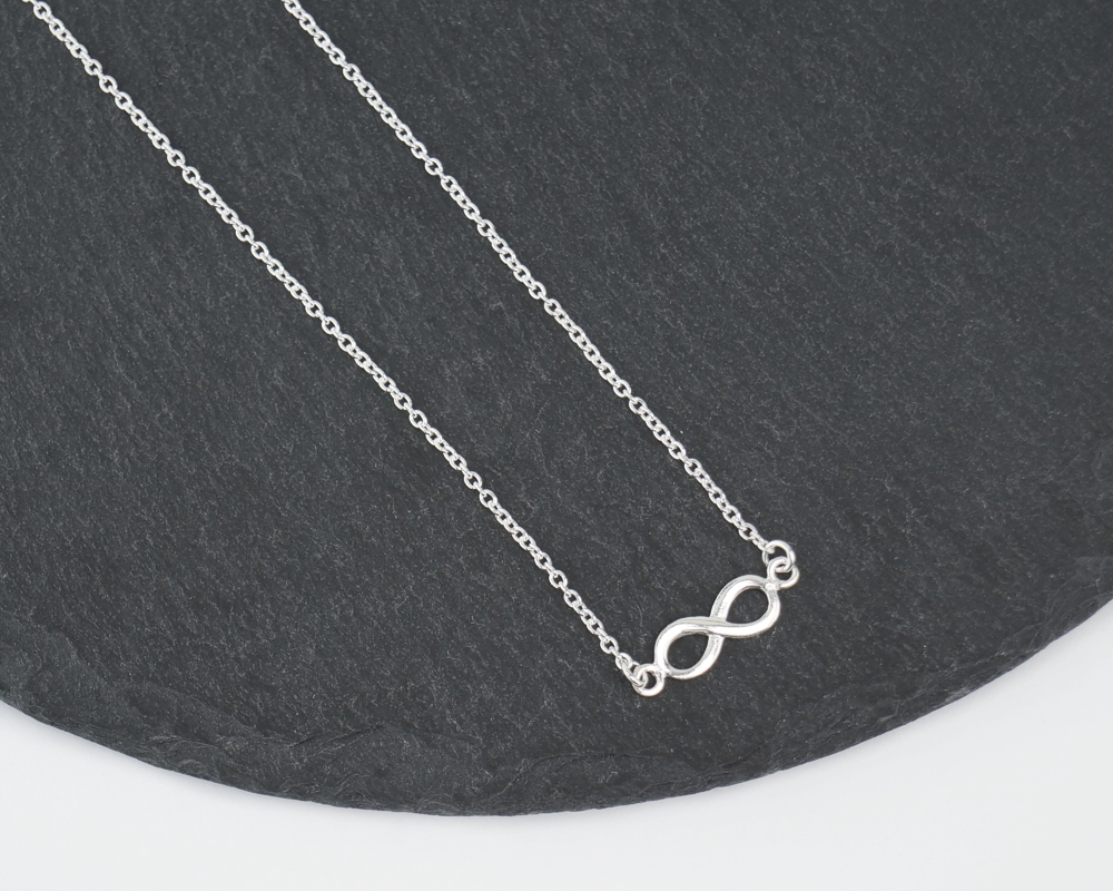 Stříbrný náhrdelník Nekonečno, se zapínáním na karabinku a nastavitelnou délkou. Šperk je označen puncem ryzosti. Ryzost: Ag 925/1000 Délka: 40 - 45 cm Hmotnost: cca 2,5 g Velikost ozdoby: 13 mmUpozornění: všechny stříbrné šperky lze zakoupit pouze přes e-shop. Jsme registrováni u puncovního úřadu. Veškeré informace naleznete zde.