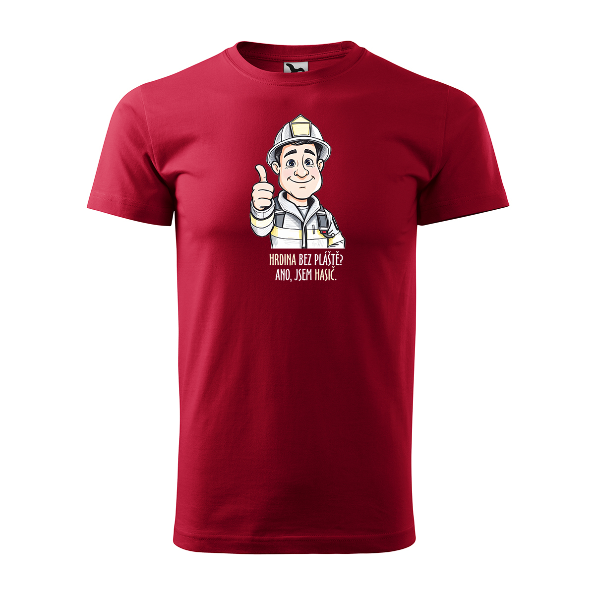 Tričko s potiskem pro hasiče Hrdina bez pláště? Ano, jsem hasič: červené L