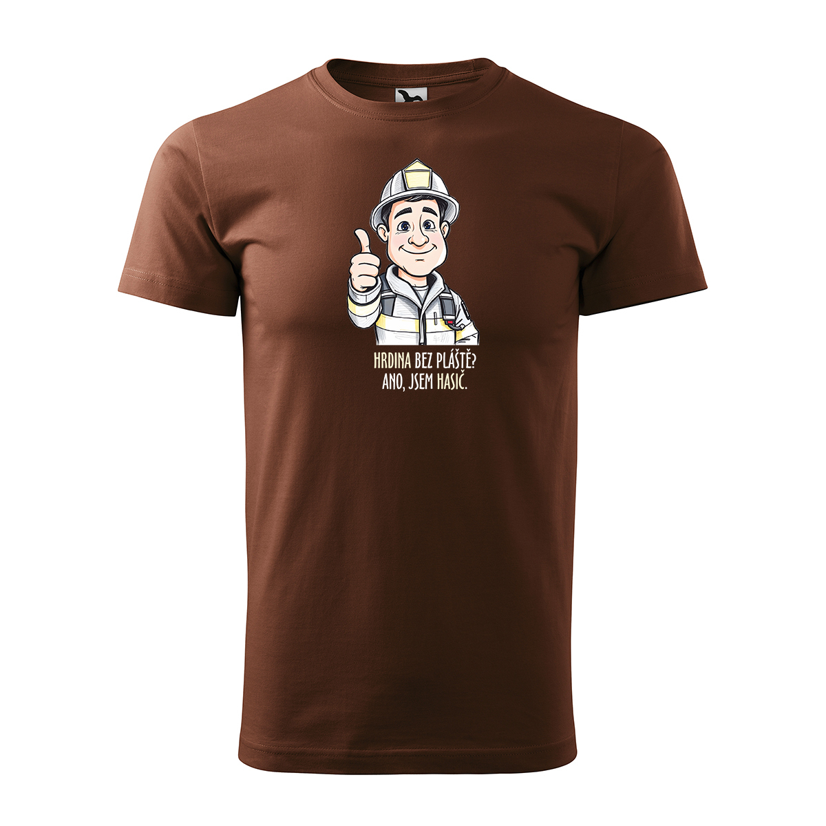 Tričko s potiskem pro hasiče Hrdina bez pláště? Ano, jsem hasič: hnědé 3XL