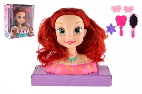 Česací hlava velká zrzavá s doplňky v krabici 22x24x11cm