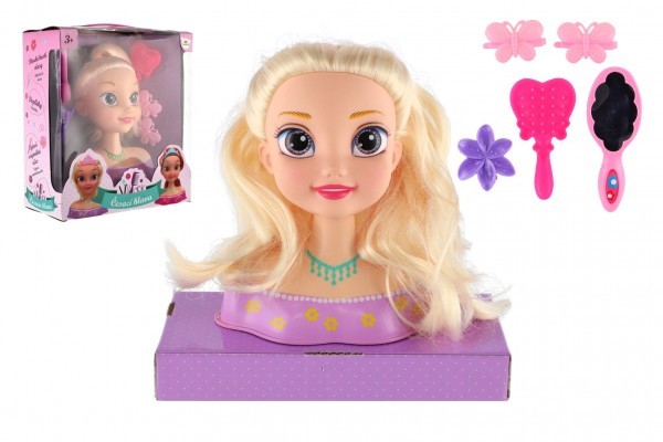 Česací hlava velká blond s doplňky v krabici 22x24x11cm