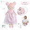 DeCuevas 20146 Plyšová panenka NIZA - 36 cmPlyšová panenka NIZA je malá baletka, patřící do stejnojmenné něžně růžové kolekce, která je novinkou roku 2022 a nabízí kromě různých druhů kočárků i nábytek pro panenky a malé parádnice. Charakteristická je pro ni jednobarevná růžová v kombinaci s růžovobílou drobnější kostičkou. Panenka je vyrobena z vysoce kvalitního hladkého lesklého plyše a je pratelná (ručně na 30 °C). Díky své velikosti a lehoučké váze je ideální společnicí každé malé holčičky nejenom na ce