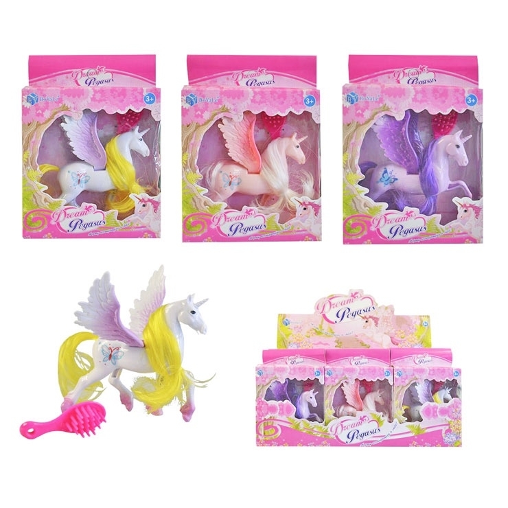 Pegas na česání, koník je 10 cm velký ve 3 barvách v balení s kartáčkem na česání, cena je za kus.