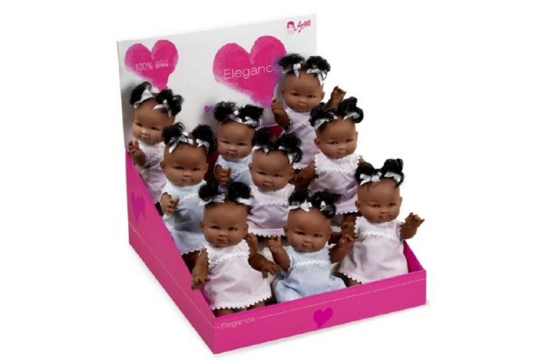 Panenka/miminko 24cm černoška tvrdé tělo 9ks v boxu