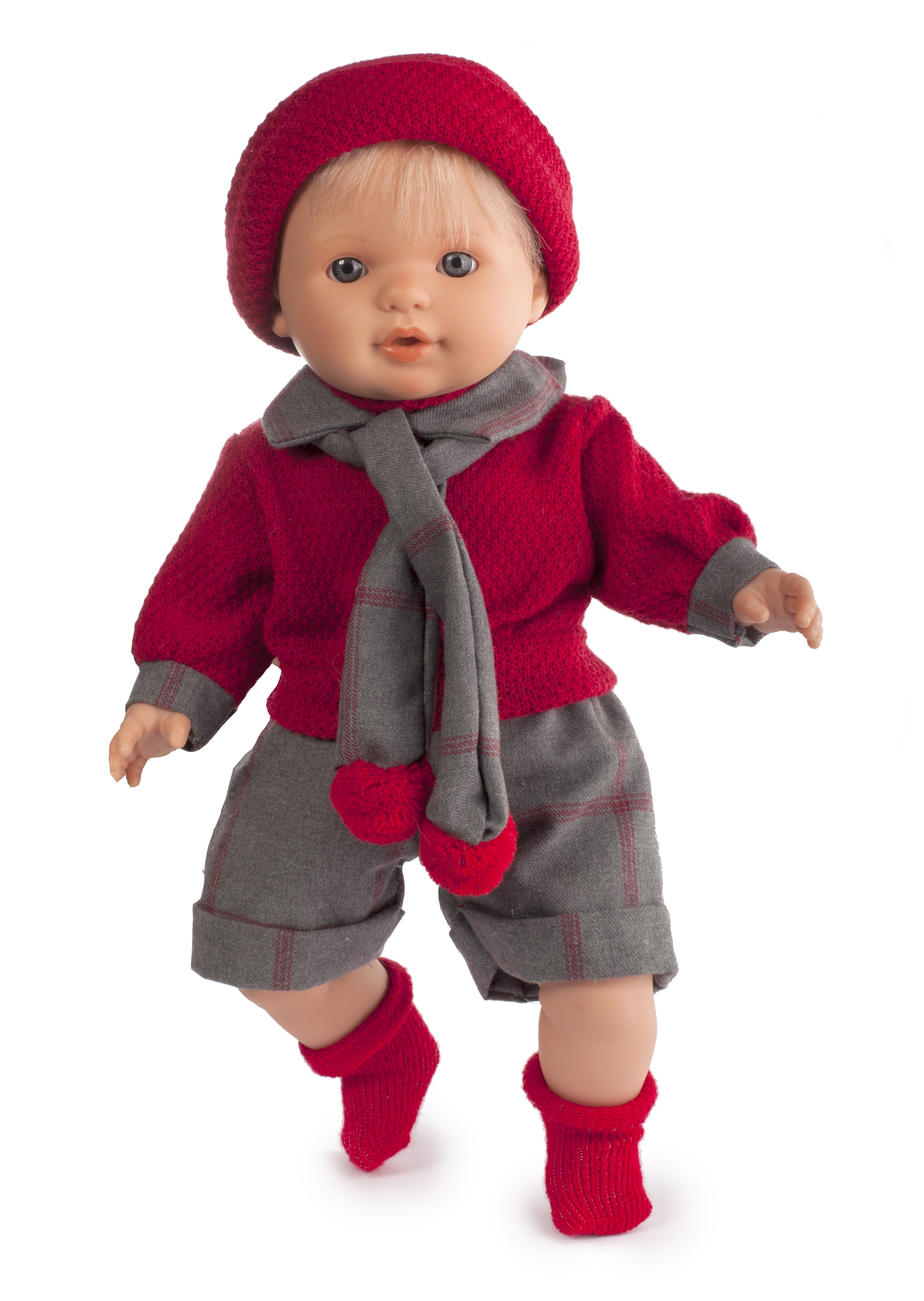 Materiál panenky: PVC, tkanina (50 % bavlna / 50 % polyester), akrylové vlákno
