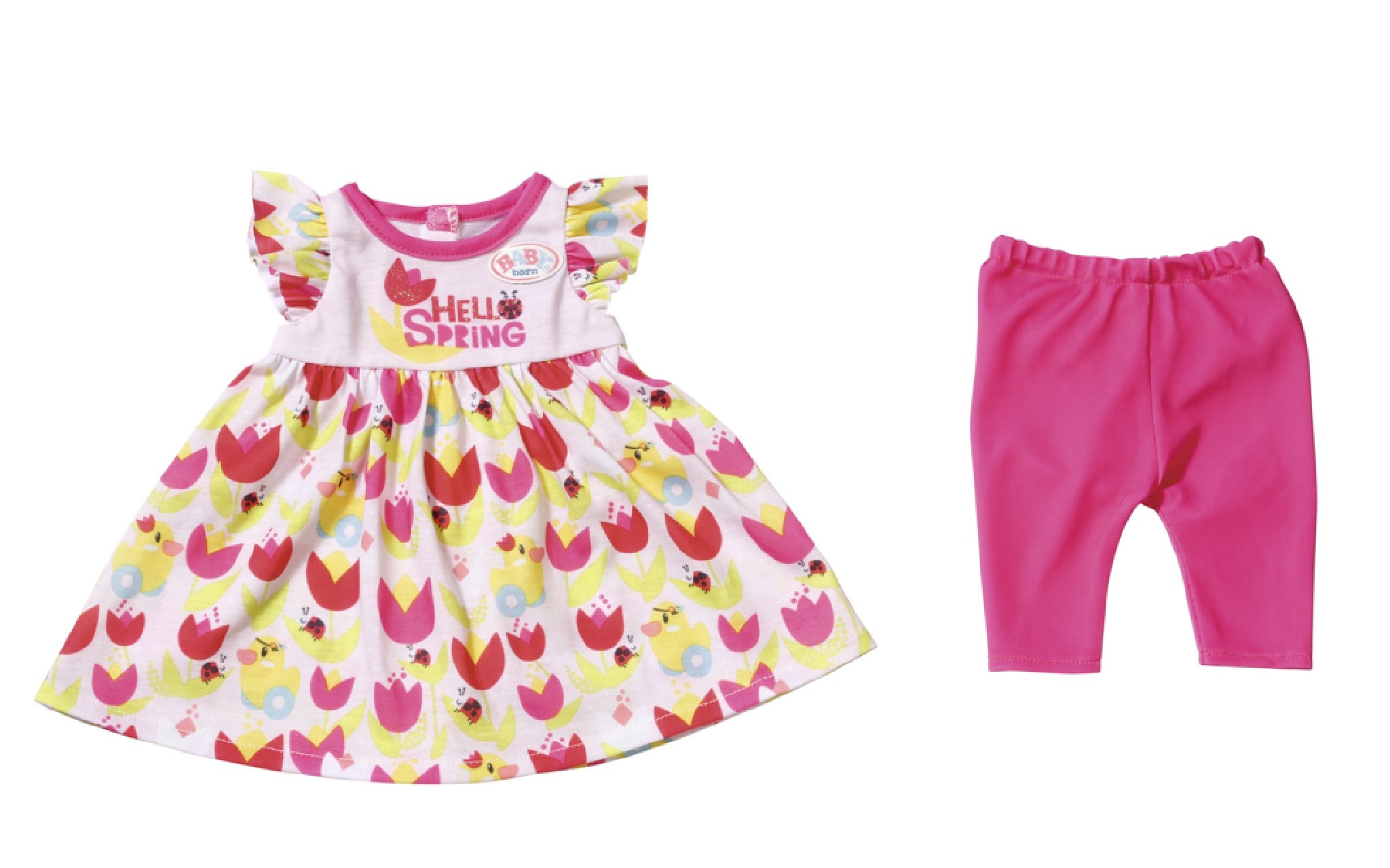 Na podzim může být pěkně deštivo. Ale malá módní stylistka BABY born se řídí známým pořekadlem, že není nic takového jako špatné počasí, je jen špatné oblečení. Pláštěnka je skvělou podzimní volbou. Zdobí ji barevné podzimní lístečky a kačenka Berta s deštníkem. Když se ochladí, BABY born ze skříně vytáhne zimní kabát s kapucí, na kterém kačenka Berta ukazuje, jak se správně lyžuje. Pro teplejší měsíce má BABY born připraveny dvoje krásné šatičky: na jaro květované s volánkovými rukávy a na léto růžové s roztomilými potisky.Růžové, fialové, žluté a tyrkysové legíny se hodí ke všem outfitům a můžou se střídat podle libosti.•Originální oblečení pro panenky BABY born.•Pro nápaditou, rozmanitou a dlouhotrvající hru plnou zábavy.BABY born Souprava na 4 roční období pro panenky velikosti 43 cm. Součásti jsou 2 šatičky, pláštěnka, zimní kabát a 4 legíny.