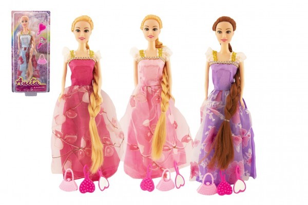 Panenka Anita kloubová 29cm plast s dlouhým copem s doplňky 4 druhy v blistru