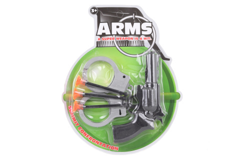Plastová pistole na přísavky. Balení obsahuje pistoli, 3 přísavky a pouta. Rozměr balení cca 18,5 x 23 x 2 cm. Věk 3+