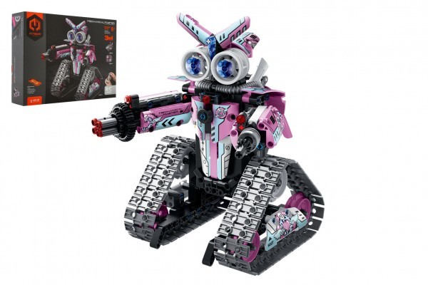 Tento růžový RC robot je navržen tak, aby si ho děti i dospělí mohli sami sestavit z jednotlivých dílků podle přiloženého návodu. Díky dálkovému ovládání na frekvenci 2,4 GHz lze pohybovat pásy robota nezávisle a vytvářet tak originální pohybové kreace, které umožní spoustu zábavy a rozvoj motorických dovedností. Navíc je možné robota ovládat i přes Bluetooth, což přidává další úroveň interaktivity a pohodlí.
