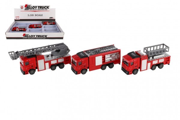 Auto hasiči plast 13-16cm na zpětné natažení 3 druhy 12ks v boxu