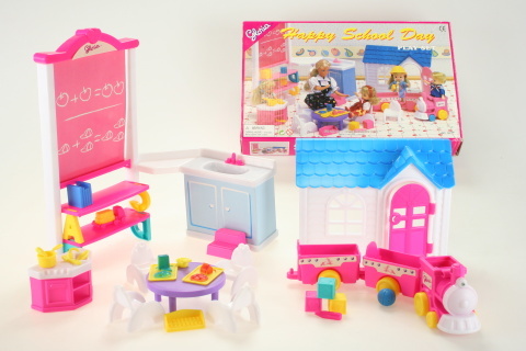 Glorie školka je skvěle vybavený herní set, který obsahuje velkou tabuli s policemi o rozměrech 28,5 x 16 cm, kterou lze připojit k praktickému umyvadlu o velikosti 11,5 x 11 cm. Děti budou nadšené z domečku s otevíracími dvířky (20 x 5 x 6 cm), kde si mohou představovat a vytvářet různé scénáře. Součástí jsou také čtyři dětské židličky (4,3 x 4,3 x 5 cm), dětský stoleček, malý vařič pro hry na vaření a rozmanitý dětský vláček se třemi vagony (délka 25,5 cm, šířka cca 4,8 cm). Set doplňuje řada drobných doplňků, hraček a nádobí, takže zábava nikdy nekončí. Panenky nejsou součástí balení, což umožňuje využít vlastní oblíbené postavičky vašich dětí.