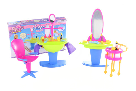 Glorie kadeřnictví obsahuje dva stolky se zrcadlem cca 17 x 7 x 29 cm, odkládací stolek 14 x 10 cm, polohovatelné křeslo. Součástí jsou také doplňky. Vyrobeno z plastu. Panenka není součástí balení. Rozměry balení cca 32 x 20 x 5 cm. Věk 3+ číst celé