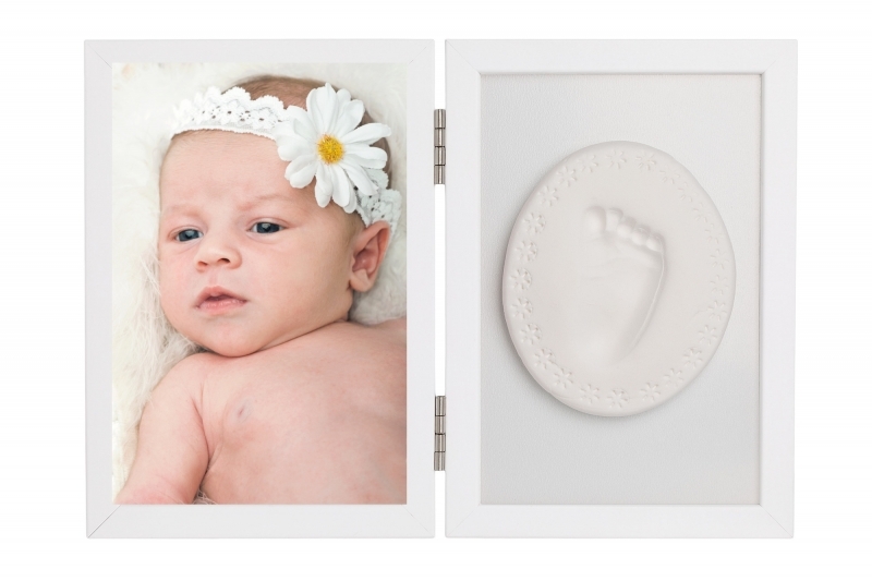 Sada na otisk miminka, dvojitý rámeček s modelínou,otisk ručičky, nožičky, bílý, 46612301