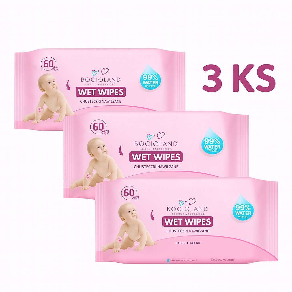 Výhodné balení - 3x Vlhčené čistící ubrousky 99 % voda 60 ks ubrousků