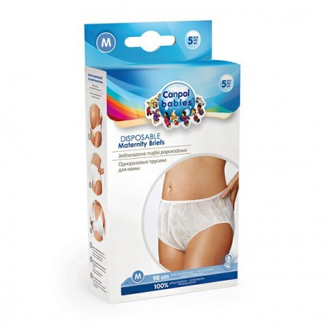 Jednorázové hygienické kalhotky jsou určeny k použití v období po porodu. Jsou vyrobeny z měkkých, jemných vláken, které nedráždí pokožku a dobře propouští vzduch. V pase a kolem nohavičky jsou zakončeny jemnou gumou. Z hygienických důvodů je každý kus zabalen zvlášť. Dodávají se ve třech rozměrech: M/L, L, L/XL (velikost je uvedena na obalu). Návod k použití: Po použití kalhotky zabalte a vyhoďte do odpadkového koše.Upozornění! Výrobek není hračka. Uchovávejte mimo dosah dítěte.Kalhotky odpovídají požadavkům:Směrnice Evropského parlamentu a Rady 2001/95/EC o obecné bezpečnosti výrobků.