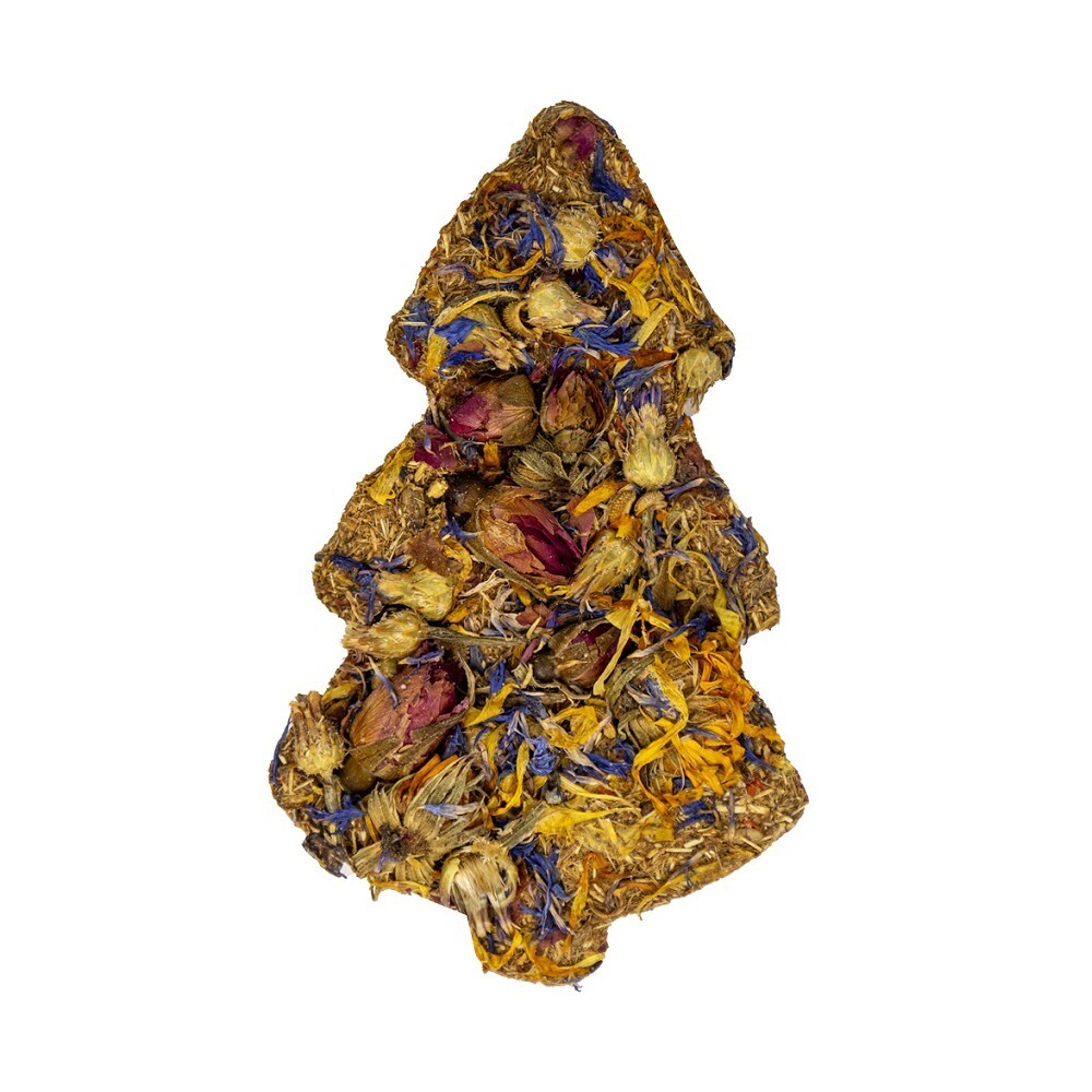 Doplňkové krmivo - pamlsek pro hlodavce ve vánočním designuBezobilné vánoční stromky jsou skvělou pochoutkou pro hlodavce a králíky, které poskytují přirozenou a zdravou výživu. Nechte své mazlíčky užít si voňavou zimu s bylinkovými stromky, které jsou plné chutných a zdravých ingrediencí. Kombinace měsíčku, chrpy a růže nabízí vyváženou směs chutí a vůní, které si vaši mazlíčci zamilují. Šípek, růže a ibišek vytváří jedinečnou směs, která je nejen lahodná, ale také plná vitamínů a antioxidantů. Chrpa - tento stromek je plný aromatické chrpy, která je oblíbená pro své přírodní vlastnosti. Složení: sušené luční traviny, byliny, semena travin a sušená zelenina