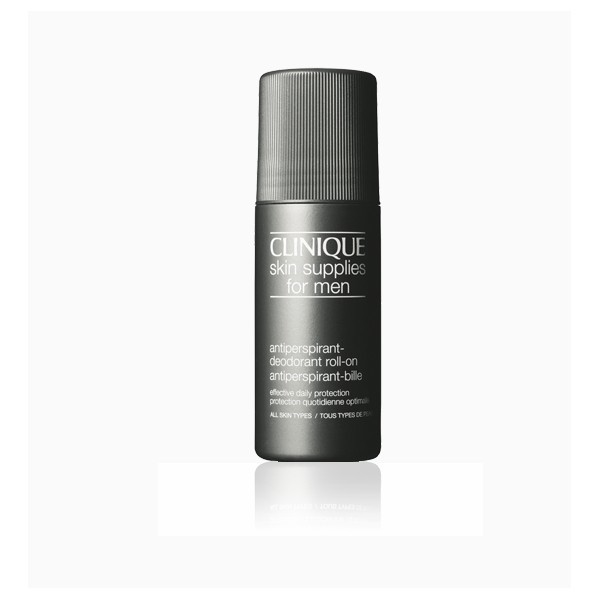 **Clinique Skin Supplies For Men Antiperspirant Roll On**. Poskytuje maximální ochranu proti pocení a zápachu, nezanechává skvrny. **Použití:** Aplikujte přímo na pokožku podpaží. Nepoužívejte na poraněnou či podrážděnou pokožku.