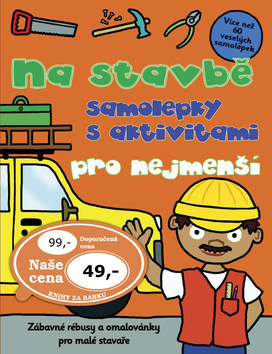 Umíš vybrat správné samolepky a dodělat rozestavený dum? Vybarvi mrakodrap na obrázku. Víš, kolik má pater? Umíš nakreslit jeřáb podle předlohy? Domaluj bagr podle čísel. Kolik žlutých náklaďáku je na obrázku? Tato úžasná knížka plná aktivit z prostředí stavby je určena pro nejmenší děti od tří...