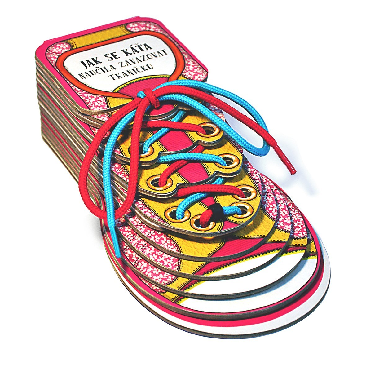 Leporelo ve tvaru dětské botičky naučí děti přístupnou a hravou formou zavazovat tkaničky. Titul obsahuje jednoduchý motivační příběh a pod sešněrovanými stránkami v jednotlivých krocích i ilustrovaný návod jak si tkaničku zavázat.