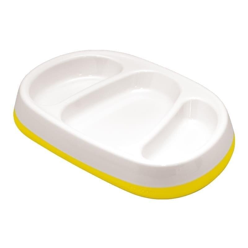 Testowany w laboratorium: maksymalnie bezpieczne dla dziecka, wykonane z nietoksycznych materiałów. Talerz z trzema przegródkami pozwala łatwo kontrolować porcje i rozdzielać różne rodzaje jedzenia dla wybrednych smakoszy. Rozmiar przegródek jest idealny dla małej dziecięcej porcji: 120ml/260ml/120ml przegródki o głębokości 3 cm sprawiają, że jedzenie nie zsuwa się tak łatwo z talerza. Prosta krawędź została zaprojektowana tak, aby dziecko mogło jak najbliżej przysunąć się do talerza, dzięki czemu samodzielne jedzenie jest bardziej porządne i czyste. Antypoślizgowy spód talerza utrzymuje go w miejscu i zapobiega niepotrzebnemu przesuwaniu. Skos talerza pozwala na gromadzenie się jedzenia po jednej stronie talerza, dzięki czemu dziecko może wygodnie brać jedzenie za pomocą przyborów do spożywania posiłków. Zaokrąglone rogi talerza ułatwiają dziecku samodzielne jedzenie.