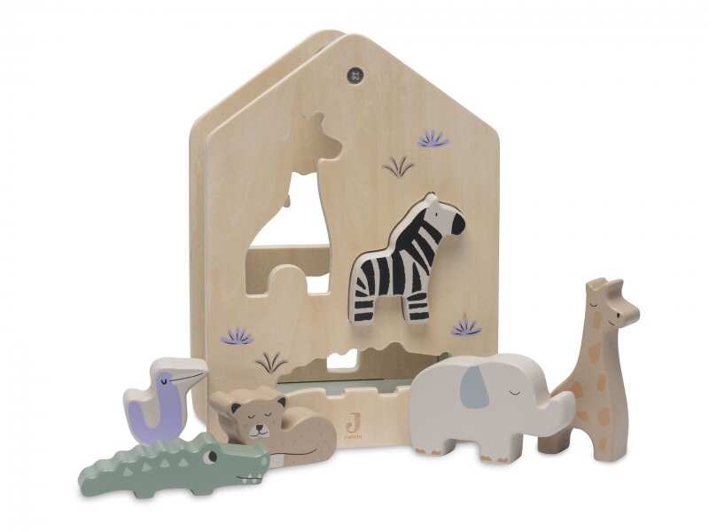 Dřevěná hračka se šesti zvířátky z džungle a s otvory ve tvaru těchto zvířátek učí děti kreativním způsobem rozpoznávat tvary a zdokonalit svou koordinaci rukou a očí. Vyrobeno z kvalitního dřeva z udržitelných zdrojů. Rozměry: 22 x 15 x 8 cm Vhodné pro děti od 12 měsíců. číst celé