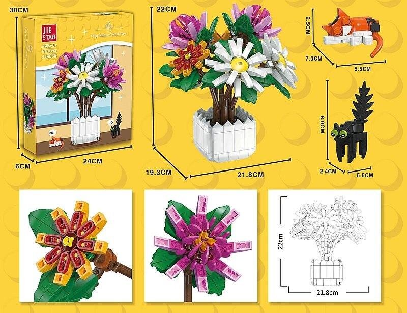 Zestaw klocków - kwiaty, chryzantema, 900szt, wym.Rozłożonej 22x19x22cm; 30x2x6cm, box číst celé