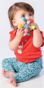 Gryzak dla dzieci Manhattan Toy to dwunastoramienna kula, która swoim kształtem i wykonaniem przynosi ulgę na czas ząbkowania. Kolorowe okręgi na ramionach podczas drgania wydają przyjemny, w odróżnieniu od standardowych grzechotek, dźwięk.