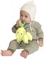 Sympatyczna i roześmiana zawieszka od Manhattan Toy z pewnością wywoła uśmiech na twarzach maluchów i zapewni im dużo rozrywki w trakcie podróży i spaceru. Pluszowa cytryna ma wyhaftowane rysy twarzy i zapinaną na zamek przegrodę, w której mieszczą się trzy plastry z miękkiej tkaniny w kolorze żółtym. Przymocowane do miłych wstążeczek, posiadają unikalne cechy, takie jak: tekstura grzechotki, piszczałka i marszcząca się powłoka. Całość można przymocować do wózka lub fotelika za pomocą wygodnego klipsa, który pełni również funkcję gryzaka. Sprawdzi się do zabawy w domu jak i poza nim. Żywy i radosny odcień cytryny sprawi, że żaden maluszek nie wypuści zabawki z rączek.