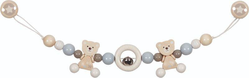 Niezwykła dekoracja wyposażona w dzwoneczek, mocowana za pomocą dwóch klipsów. Zawieszka została wykonana z drewna. Zawieszona w wózku staje się dla najmłodszych atrakcją, która zachęcająca do prób chwytania. Stanowi doskonały i naturalny trening małej motoryki i koordynacji ruchowej.