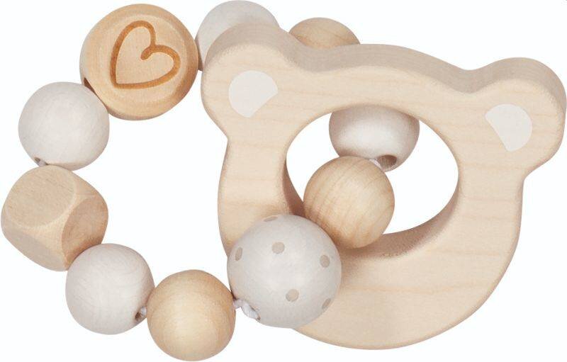 Drewniana grzechotka z elastycznym pierścieniem Miś Goki Baby