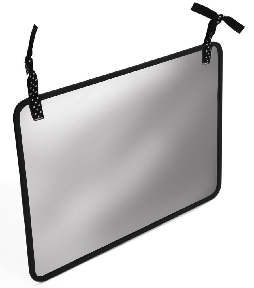 Lustro dwufunkcyjne, którego jedna strona posiada bezpieczne nietłuczące się lusterko do samodzielnego odkrywania i stymulowania wzroku dziecka. Zaś druga strona ma czarno-białą grafikę o wysokim kontraście, która pomaga dziecku w rozwoju wizualnym i wielozmysłowym. Zabawka posiada wstążki...