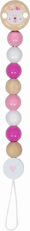 Biorąc pod uwagę kolorystykę utrzymaną w różu, drewniany łańcuszek do smoczka miś polarny Goki polecany jest w szczególności dla dziewczynek.