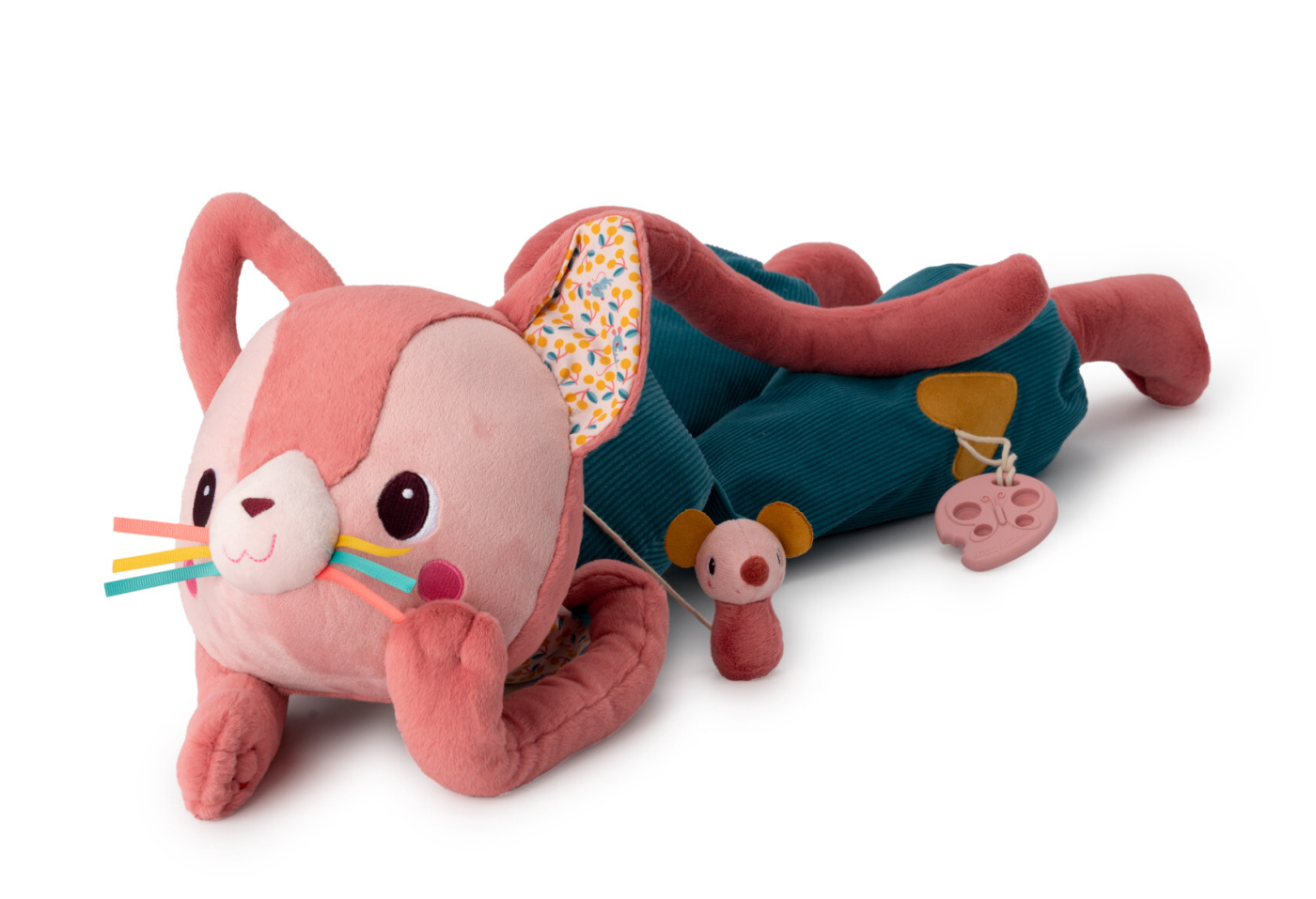 Fantasticky zábavná velká textilní hračka kočička Jeanne vykouzlí úsměv na tváři každého dítěte. Nabízí podmanivý hmatový zážitek s každým dotykem. S různými texturami a aktivitami objevují děti svět vjemů a hračka tak zároveň stimuluje jejich smysly. Hračka nabízí dětem množství překvapivých aktivit - měkké příjemné látky, šustění papíru, zrcátko, malá myška a spousta dalších překvapení čekají na prozkoumání. Kočička Jeanne je kamarádka, která bude doprovázet děti od 6 měsíců až do předškolních let.