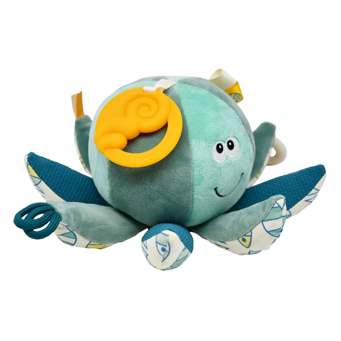 Senzorická hračka s hryzátkom Chobotnica je určená pre bábätká od narodenia. Na jej tele sú upevnené dve hryzátká, z toho jedno silikónové, pre posilňovanie ďasien bábätka a neskôr pomáhajú pri prerezávaní prvých zúbkov. Šnúrky na chvoste a ostatné štítky na tele chobotnice motivujú k dotyku a rozvíjajú zmysel hmatu. Chápadla chobotnice sú z látky potlačenej bezpečnou sójovou potlačou. So zrkadielkom zo spodnej strany.