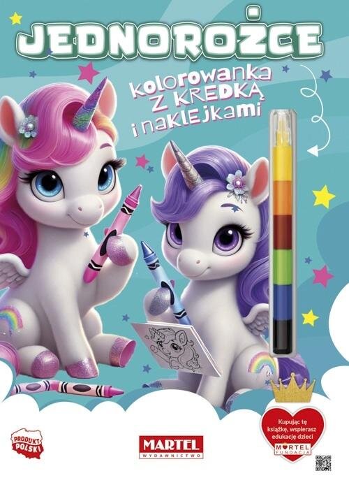 Jednorożce. Kolorowanka z kredką i naklejkami (polsky)