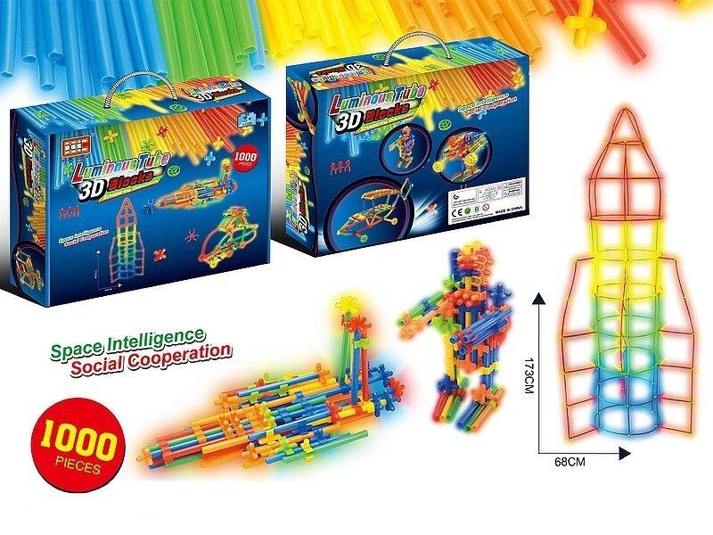 zestaw klocków fluo 1000szt, świecą w nocy, słomki; 37,5x29x8cm, Box číst celé