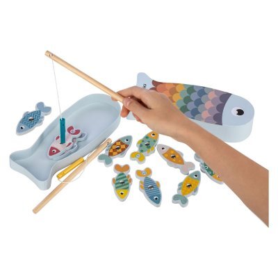 obsahuje 10 barevných rybiček a 2 rybářské pruty, což umožňuje malým rybářům zahájit soutěž