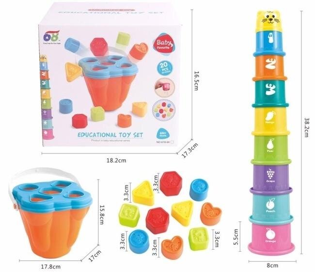 Dobrze, oto dłuższy opis produktu: Edukacyjny Zestaw Zabawek "Baby Favorite" - Rozwijająca Zabawa dla Najmłodszych. Podaruj swojemu dziecku fascynującą i edukacyjną zabawę z naszym wieloelementowym zestawem "Baby Favorite"! Ten wszechstronny komplet zawiera aż 20 różnorodnych części, które zapewnią wiele godzin kreatywnej rozrywki i wspomogą wszechstronny rozwój malucha. Dwa w Jednym: Sorter Kształtów i Wieża z Kubeczków. Zestaw składa się z dwóch głównych elementów: Interaktywny sorter kształtów: Kolorowe wiaderko z otworem na pokrywce oraz 10 różnokolorowych klocków o różnych kształtach (kwadrat, koło, trójkąt, gwiazdka, serce i inne). Zadaniem dziecka jest dopasowanie klocków do odpowiednich otworów, co doskonale ćwiczy koordynację wzrokowo-ruchową, precyzję manualną oraz umiejętność rozpoznawania kształtów i kolorów. Zabawa w sortowanie uczy logicznego myślenia i rozwiązywania problemów. Wesoła wieża z kubeczków: 10 kolorowych kubeczków o różnej wielkości, które można układać jeden w drugim lub tworzyć z nich wysoką wieżę. Każdy kubeczek ozdobiony jest uroczą grafiką ze zwierzątkiem, cyfrą i owocem, co dodatkowo stymuluje ciekawość dziecka i wprowadza elementy nauki poprzez zabawę. Układanie kubeczków rozwija zdolności motoryczne, wyobraźnię przestrzenną oraz uczy pojęć wielkości i sekwencji. Wspieranie Rozwoju Dziecka poprzez Zabawę Zabawki z zestawu "Baby Favorite" zostały zaprojektowane z myślą o wspieraniu kluczowych obszarów rozwoju dziecka: Koordynacja wzrokowo-ruchowa: Dopasowywanie klocków i układanie kubeczków wymaga precyzyjnych ruchów rąk i skoordynowania ich z wzrokiem. Umiejętności motoryczne: Chwytanie, trzymanie i manipulowanie elementami zabawki wzmacnia mięśnie dłoni i palców. Rozpoznawanie kształtów i kolorów: Różnorodność kształtów i żywe kolory klocków i kubeczków pomagają w nauce ich rozróżniania i nazywania. Myślenie logiczne: Dopasowywanie klocków do otworów w sorterze oraz układanie kubeczków według wielkości rozwija logiczne myślenie i umiejętność rozwiązywania prostych problemów. Wyobraźnia i kreatywność: Kubeczki mogą służyć nie tylko do układania wieży, ale także jako foremki do piasku, naczynia do zabawy w dom czy inne kreatywne zastosowania. Bezpieczeństwo i Wysoka Jakość Zestaw "Baby Favorite" wykonany jest z bezpiecznych, nietoksycznych materiałów, które są przyjazne dla delikatnej skóry dziecka. Solidna konstrukcja zapewnia trwałość zabawek, dzięki czemu będą służyć przez długi czas. Idealny Pomysł na Prezent Edukacyjny zestaw zabawek "Baby Favorite" to doskonały pomysł na prezent dla niemowląt i małych dzieci. Zapakowany w estetyczne pudełko o wymiarach 18.2 cm x 17.3 cm x 16.5 cm, będzie wspaniałym upominkiem na urodziny, baby shower czy inną okazję. Po ułożeniu, wieża z kubeczków osiąga wysokość 38.2 cm. Zamów już dziś i podaruj swojemu dziecku radość z mądrej zabawy!