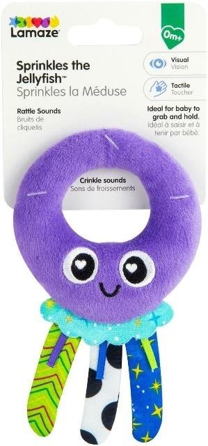 Mięciutka grzechotka w kształcie Meduzy od Lamaze została stworzona z myślą o najmłodszych. Delikatny dźwięk grzechotki, słyszalny nawet przy lekkim poruszaniu rączką, dostarcza bodźce słuchowe wzbudzając zainteresowanie najmłodszych. Razem z grzechotką Meduząpobudź wyobraźnię Twojego dziecka i jego zmysły.