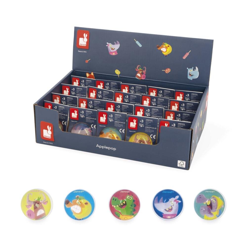 Janod Applepop DISPLEJ Skákacia loptička 5 motívov 20 ks