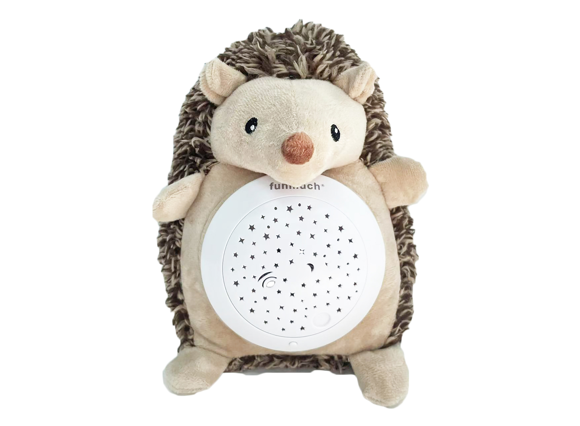 Usínací ježek s projekcí. Velikost 20cm. Baterie 3xAAA nejsou součástí. Projektor na bříšku ježkasvítí, hraje a otáčí se. Otočením projektoru proti směru hodinových ručiček se spustí ukolébavka a během hraní se projektor otáčí do původní polohy. Tím se hýbe i projekce hvězdné oblohy. Projektor jde vyjmout z bříška ježka. Dozadu projektoru se vkládají baterie. Projekce se zapíná tlačítkem.