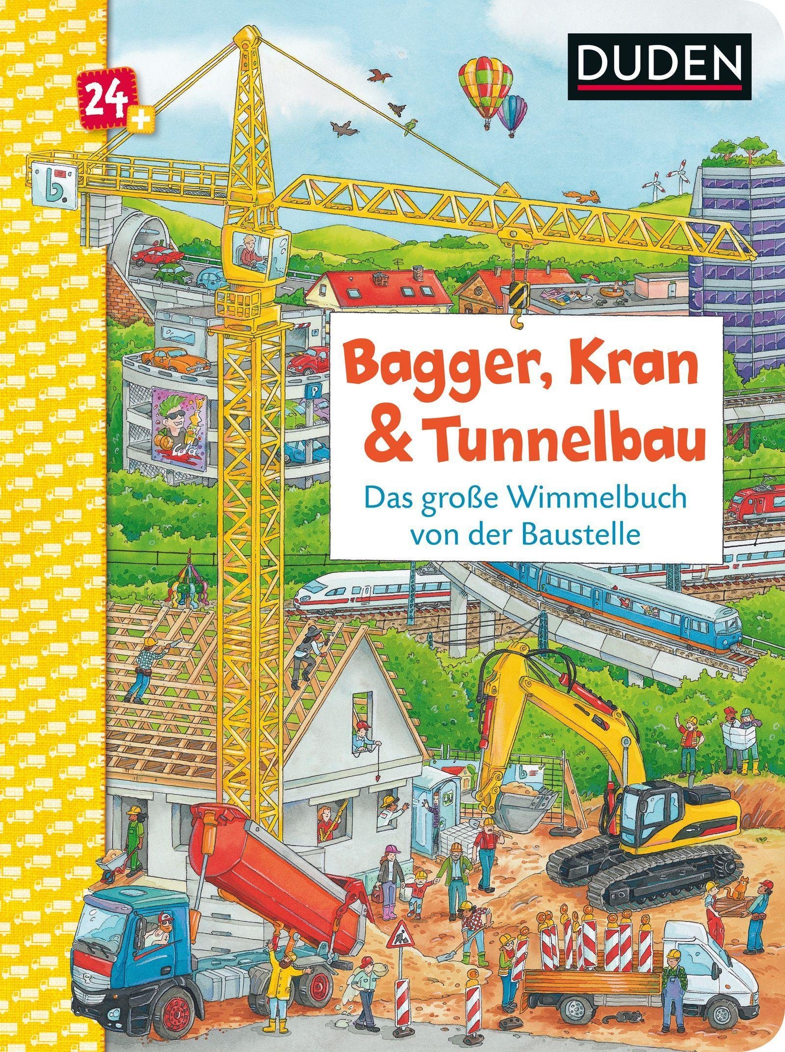 Duden 24+: Bagger, Kran und Tunnelbau. Das große Wimmelbuch von der Baustelle (německy)