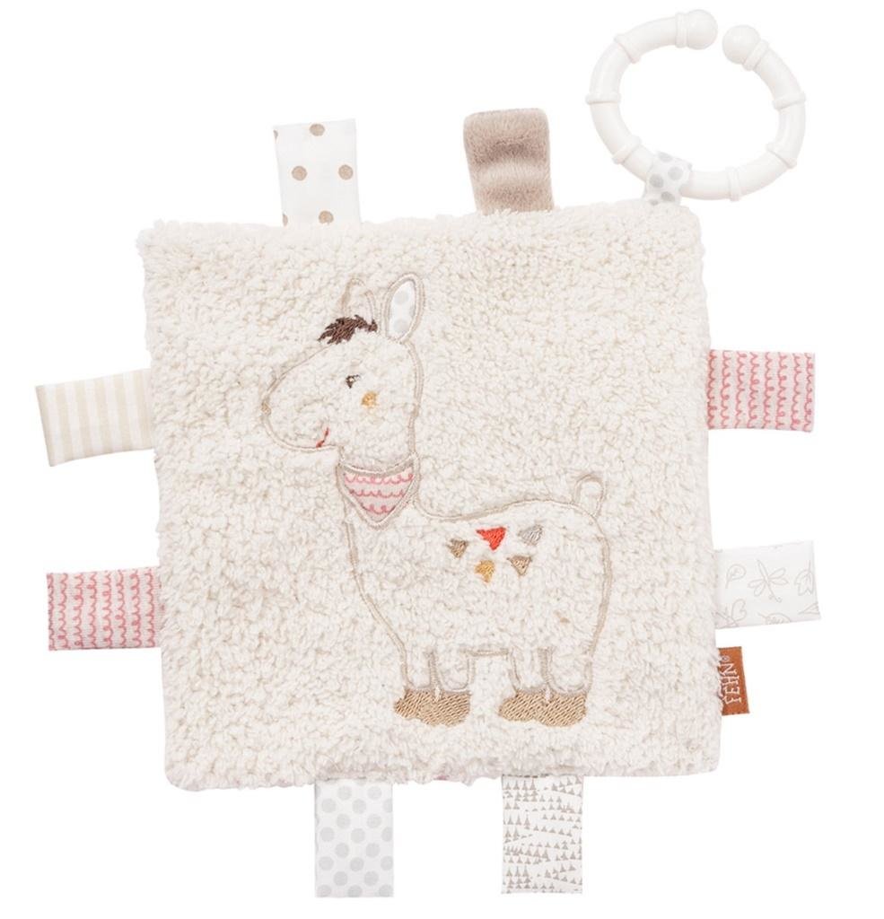 Szmatka Sensoryczna, Lama Maya, z kolekcji: Peru. Szmatka sensoryczna Lama z kolekcji: Peru, będzie doskonałym towarzyszem dla Twojego maleństwa. Super miękka i urocza Lama , o pięknych delikatnych kolorach, dzięki aksamitnym w dotyku materiałom z jakich jest wykonana, oraz ukrytym piszczałkom, z pewnością wzbudzi wielkie zainteresowanie. Umożliwia ciekawskim maluchom badanie świata poprzez oglądanie, naciskanie, głaskanie lub szarpanie wystających elementów o różnej fakturze i kolorze. Dzięki praktycznemu pierścieniowi w kształcie litery C nadaje się do zawieszenia wszędzie i szybko stanie się ulubioną zabawką Twojego dziecka. Rozwija i pobudza zmysły. Doskonali zdolności motoryczne. Posiada wewnątrz szeleszczący papier i piszczałki. Aksamitna w dotyku. Do zawieszenia na łóżeczku, wózku, nosidełku itp. Można prać. Wszystkie zabawki niemieckiej marki FEHN są bezpieczne dla dzieci od 0 lat. Wykonane są z najlepszej jakości materiałów. Spełniają normy EN71, CE, badane w instytutach Stiftung Warentest lub kotest.