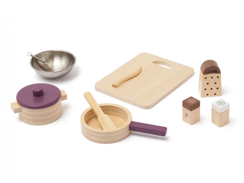 Sada na vaření je součástí ucelené kolekce dřevěných hraček Kids Concept Bistro.