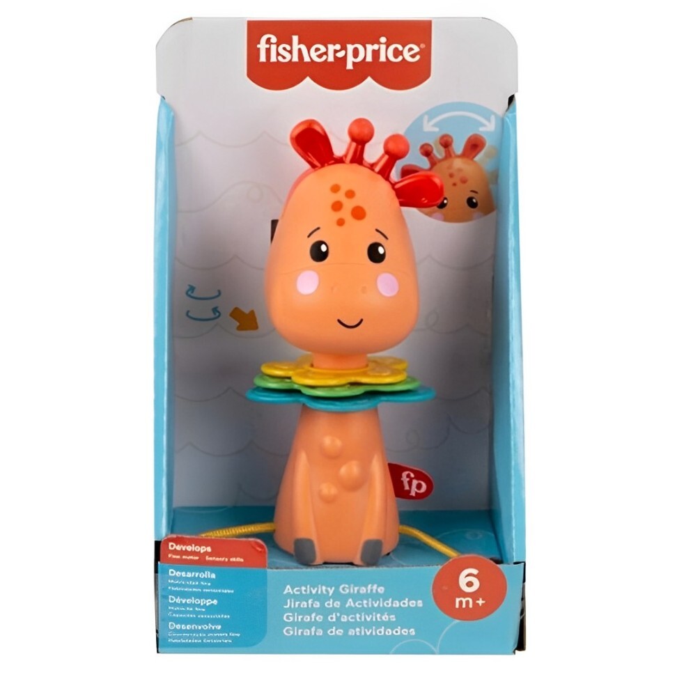 Živá žirafa Fisher-Price® Activity Giraffe je plná interaktivních prvků, které malé děti mohou objevovat. Děti mohou otáčet barevné kroužky, pohybovat ušima žirafy tam a zpět nebo tahat měkké nožičky, což je nejen zabaví, ale zároveň pomáhá rozvíjet jejich jemné motorické dovednosti. Texturované části žirafy stimulují smysly dítěte a nabízejí zajímavý hmatový zážitek. Tato kompaktní a snadno přenosná hračka je ideální na doma i na cesty.