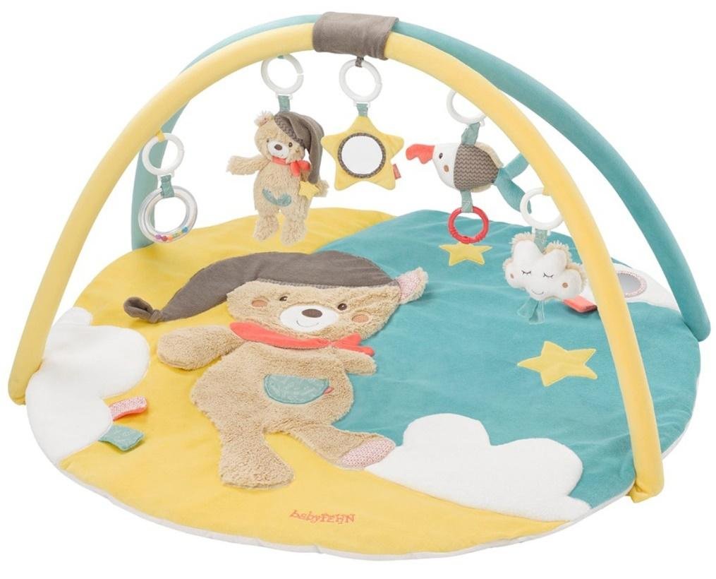 Mata edukacyjna z kolekcji: Bruno. To idealny pierwszy plac zabaw dla małych odkrywców. Wraz z uroczym misiem Bruno i jego przyjaciółmi:Rybką Piłą i Śpiącą Chmurką, Twoje dziecko przeżyje niesamowite przygody i ekscytujące wyprawy odkrywcze. Trójwymiarowa mata edukacyjna może być używana jako płaski plac zabaw lub jako przytulne gniazdko. Miękkie materiały zapewniają bezpieczeństwo i komfort dziecka od urodzenia. Bezpieczne lusterko w centralnej części maty, na złączeniu łuków, zachęca do spoglądania i rozpoznawania. Urocze zabawki przymocowane do łuków są łatwo dostępne z każdego miejsca maty. Pomagają rozwijać zdolności motoryczne i koordynację pierwszego kontaktu ręka-oko. Miś Bruno z ukrytą piszczałką, grzechotki z kolorowymi koralikami, Rybka i chmurka, pobudzają dziecięcą ciekawość zaskakującymi dźwiękami. Gryzak o specjalnej strukturze przyniesie ulgę podczas fazy ząbkowania. Pięć małych zabawek można łatwo odpiąć i przymocować w wielu miejscach, dzięki czemu zapewniają one rozrywkę w domu i w podróży. Miękki i wygodnie wyściełany kocyk oferuje wiele możliwości. Tekstury, doszyte elementy oraz różne materiały zachęcają do dotknięcia, przytulenia i ciągnięcia. Urocze, perfekcyjnie wykonane detale Misia Bruno zachęcają Twoje dziecko do eksploracji. Łuki są łatwe do zdemontowania, dzięki czemu dziecko może używać maty do zabawy, leżenia, raczkowania lub siedzenia. Odpinane pluszowe, miękkie zabawki. Bezpieczne lusterko. Piszczałka, grzechotka, dzwoneczek i barwne koraliki pomagają stymulować dotyk i słuch. Zachęca do zabawy oraz ćwiczeń wzmacniających mięśnie. Stymuluje i wspomaga rozwój poznawczy i umiejętności motoryczne. Łatwa w montażu. Wiek: Od 0 lat. Wszystkie& zabawki niemieckiej marki FEHN są bezpieczne dla dzieci od 0 lat. Wykonane są z najlepszej jakości materiałów. Spełniają normy EN71, CE, badane w instytutach "Stiftung Warentest" lub "kotest.