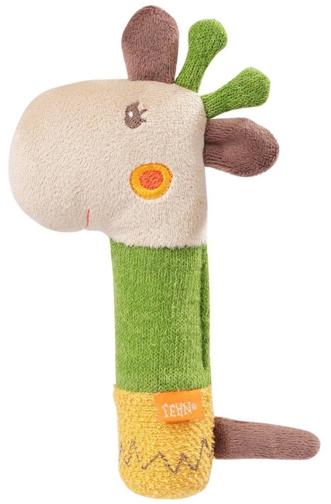 Zabawka do Rączki z Piszczałką i Grzechotką, Żyrafa Lotta, z Kolekcji: Loopy i Lotta. Stworzona dla małych rączek, delikatna w dotyku, urocza maskotka Żyrafa, z kolekcji: Loopy i Lotta, szybko zdobędzie serce dziecka. Przyjazna Żyrafa, piszczy radośnie, gdy dziecko ją ściska. Posiada w środku grzechotkę.To budzi ciekawość dzieci, pobudza pierwsze ćwiczenia chwytania. Delikatne uszka służą do ssania i ciągnięcia i szarpania. Doskonały towarzysz w domu i podczas podróży, urocza Żyrafa pomaga zrozumieć świat. Rozwija i pobudza zmysły. Doskonali zdolności motoryczne. Posiada w środku grzechotkę. Wszystkie zabawki niemieckiej marki FEHN są bezpieczne dla dzieci od 0 lat. Wykonane są z najlepszej jakości materiałów. Spełniają normy EN71, CE, badane w instytutach "Stiftung Warentest" lub "kotest.
