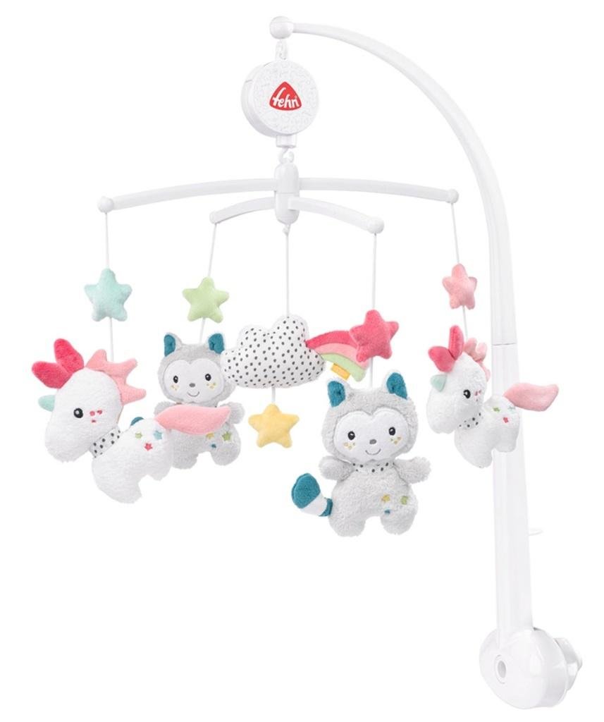 Karuzela z Pozytywką, z Kolekcji: Aiko i Yuki. Zabawne Jednorożce, migocące gwiazdki i uśmiechnięte Koty wyruszają w podróż do magicznej Japonii. Zabiorą Twojego maluszka do krainy snów. Mechaniczna pozytywka z włącznikiem/wyłącznikiem/ pozwala postaciom tańczyć i łagodnie uspokajać w rytmie popularnej kołysanki.W ciągu dnia tańczące postacie budzą ciekawość i zapraszają do słuchania, oglądania i podziwiania. Delikatne kolory i różnorodne powierzchnie stymulują percepcję dziecka. Figurki łatwo można usunąć podczas mycia. Uchwyt karuzeli umożliwia łatwe mocowanie. W ten sposób karuzela z pozytywką szybko staje się niezbędna na łóżeczku Twojego maluszka. Karuzela wyposażona jest w miłe w dotyku, łatwo odpinane zabawki i pozytywkę. Wzbudza ciekawość i stymuluje percepcję dziecka. Delikatne dźwięki pozytywki wyciszają i usypiają maluszka. Ręcznie nakręcana pozytywka nie wymaga stosowania baterii. Łatwa w montażu. Można prać. Wszystkie zabawki niemieckiej marki FEHN są bezpieczne dla dzieci od 0 lat. Wykonane są z najlepszej jakości materiałów. Spełniają normy EN71, CE, badane w instytutach "Stiftung Warentest" lub "kotest.