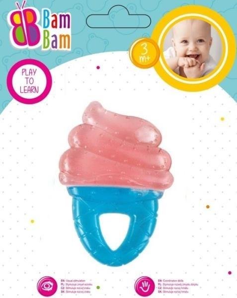 Z kategorii wodno-żelowych jest szczególnie przydatny przy etapie ząbkowania, gdy dziąsła są nabrzmiałe i rozpulchnione. Wykonany z miękkiego tworzywa, które szybko poddaje się schłodzeniu w lodówce, przynosi ulgę i ukojenie dziąseł malucha w tym trudnym dla niego okresie. Kształt gryzaczka został zaprojektowany tak, by chwytanie go, jak i trzymanie w małych rączkach, było łatwe i poręczne. Różnorodna struktura i niejednolita powierzchnia gryzaka wzmacnia doznania dotykowe i rozwija zdolności manualne. Bogata gama wzorów pozwala na skompletowanie pełnego zestawu gryzaczków w danej kategorii.